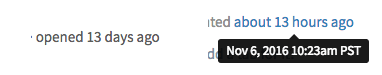 This format relates how long since an action has occurred. The exact date can be shown as a tooltip on hover.