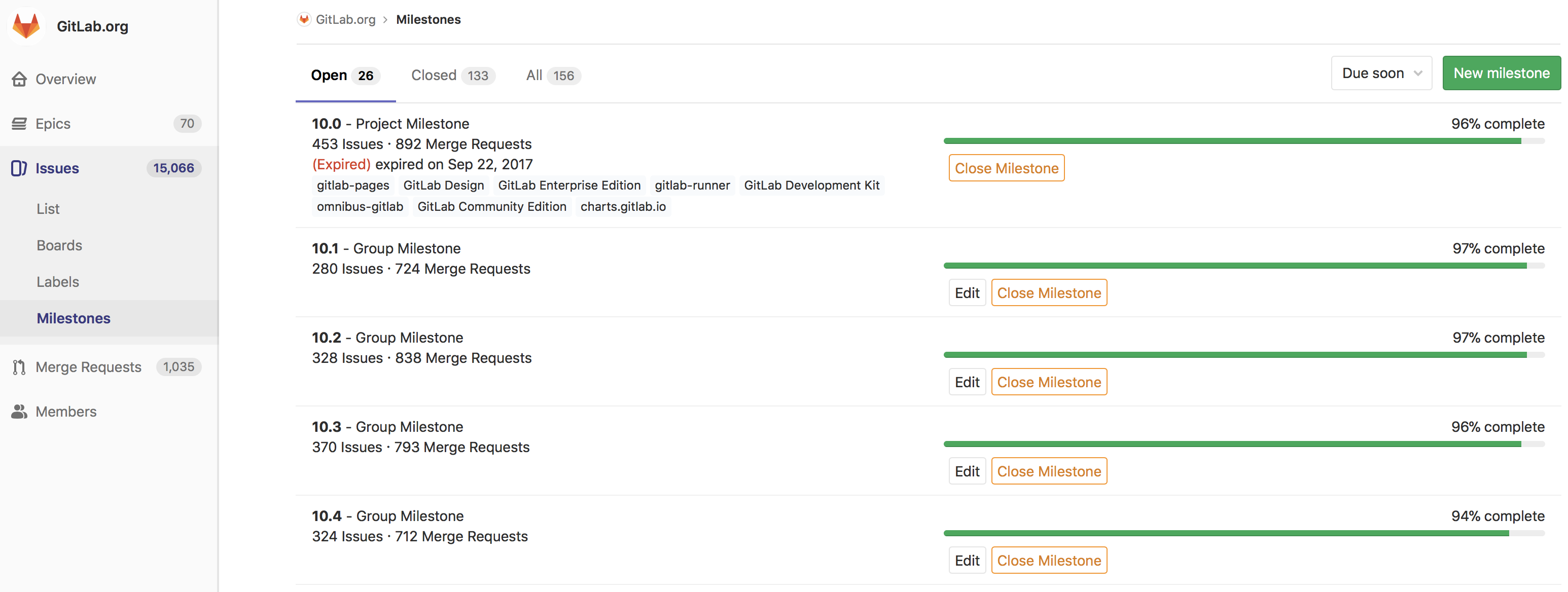 - Upcoming: Show issues or merge requests that have been assigned the open milestone that has the next upcoming due date (i.e. nearest due date in the future).